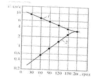 Рис.8. Характер изменения распределений скорости между головной 1 и хвостовой 2 частями ПЭ, формирующегося из сегментной стальной облицовки