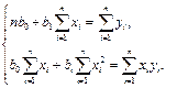 - розрахункове значення змінної у. Це є суттю методу найменших квадратів. Необхідна умова для цього в рівних нулю частинних похідних цієї функції за кожною з оцінок параметрів b0 та b1. Виконавши елементарні перетворення, дістанемо систему нормальних рівнянь: