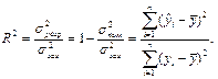 Перша частина цього виразу являє собою частину дисперсії, яку не можна пояснити через регресійний зв’язок, друга - частину дисперсії, яку можна пояснити, виходячи з регресії. Вона називається коефіцієнтом детермінації і використовується як критерій адекватності моделі, бо є мірою пояснювальної сили незалежної змінної: