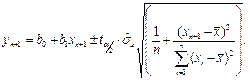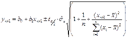 є оцінкою дійсного значення змінної yn+ 1. Таким чином з нашої вибіркової моделі ми легко можемо знаходити будь-яке прогнозне значення. Виходячи з отриманого точкового прогнозу можна побудувати інтервали довіри для його дійсного значення. Такий інтервал довіри при заданому рівні значимості α = 0,05 для yn+ 1 знаходять за формулою: