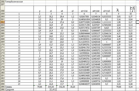 - средняя ошибка аппроксимации (рисунок 4.7, графа 10)