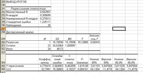 Рисунок 4.8 - Результат применения инструмента Регрессия