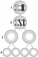 3. Запишите, какие хромосомы, и какие гены попали в клетки после первого деления мейоза.