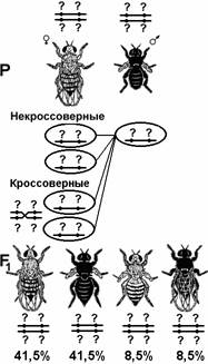 1. Проанализируйте рисунок. Запишите генотипы, некроссоверные и кроссоверные гаметы, образующиеся у родителей.