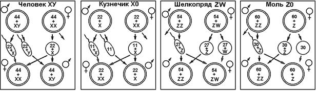 В случае гетерогаметности женского пола для половых хромосом многими авторами приняты обозначения: Z вместо Х-хромосомы и W вместо У-хромосомы.