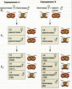 Проанализируйте результаты скрещивания А и В. Запишите генетические схемы, объясняющие результаты скрещиваний.