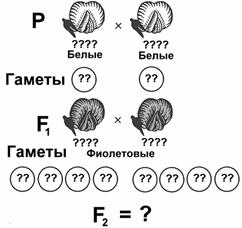 У душистого горошка скрещивание при двух сортов с белыми цветами гибридное поколение имеет фиолетовые цветы.