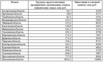 3. В таблице представлены данные по субъектам федерации Центрального федерального округа, за исключением Москвы. Области упорядочены по возрастанию независимой переменной х – объему кредитов, предоставленных предприятиям, организациям, банкам и физическим лицам.
