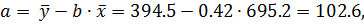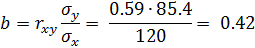 Рассчитаем b через линейный коэффициент парной корреляции: