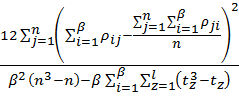 - количество связанных рангов в одной группе; z – порядковый номер групп связанных рангов; l – количество групп связанных рангов.