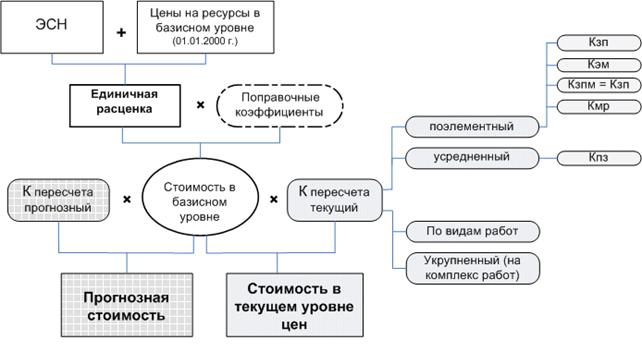 При данном методе расчета сметная стоимость определяется на основе единичных расценок, привязанных к местным условиям строительства. Определенная таким образом в базисном уровне цен, сметная стоимость переводится в текущий уровень путем применения текущих индексов пересчета.