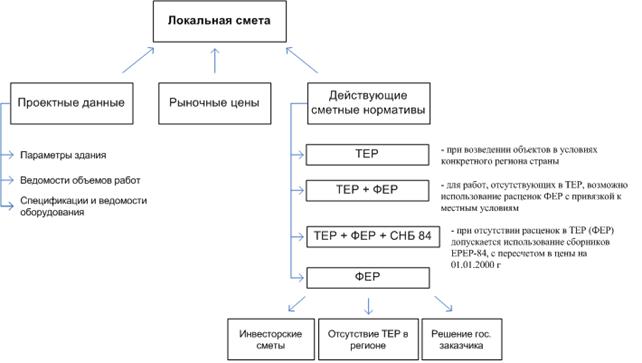 Локальные сметы на отдельные виды строительных и монтажных работ, а также на стоимость оборудования составляются исходя из данных, представленных в таблице:
