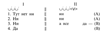 (// – знак цезуры, А – мужская, В – женская рифма)[97].