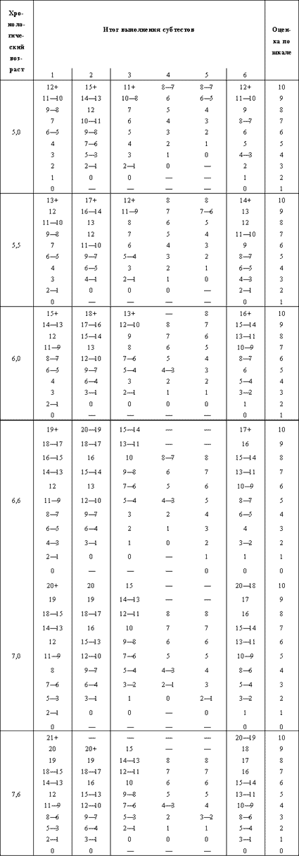 Примечание. КВ — коэффициент восприятия, равный сумме оценок по шкале; %В — процент восприятия, показывает общий уровень развития зрительного восприятия.