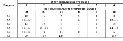 Возрастные нормативы выполнения субтестов детьми 5—7,5 лет