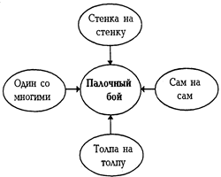 Еще одно дополнение. Учтите, что драться кистенем в плотном строю просто невозможно, стереотип поведения здесь не "стенка на стенку", а бой "сам на сам", а точнее, один, в кругу противников.