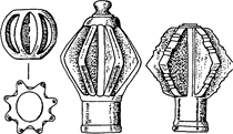 Встречались посохи с навершием в виде головы человека или животного, иногда в виде человеческой руки, сжатой в кулак, в котором находилось металлическое кольцо. Навершие пастушеского посоха закруглялось естественным образом в виде крюка, такой посох называли также клюкой, кием и т.д. (См. рис. 5)6.