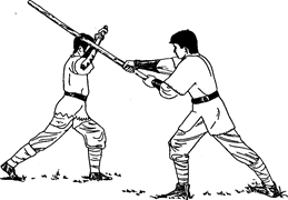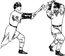 Схема отображает виды палочного боя. Не лишним будет знать, что дрались и в-оберучь (то есть держа в каждой руке по палке), в основном короткими палками, или палками разной длины. Длинным оружием — типа посоха — дрались, удерживая его двумя руками, наподобие двуручного меча, либо наподобие копья. Чаще же всего дрались в-изручь (держа дубинку в правой или левой руке). В палочном бою активно применялись удары ногами, в основном в ближней и средней дистанции (издали атаковать ногой неэффективно). До виртуозного выполнения доводилась защита перемещением.