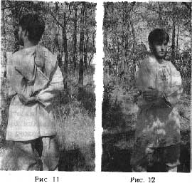 Для иллюстрации приведу высказывание, принадлежащее А. Н. Медведеву (адепту шоу дао). Смысл его сводится к тому, что оружие типа кистеня использовали все народы, что его с одинаковым успехом применяли как русские разбойники, так и японские ниндзя, только последние более хитроумно и изобретательно (?!). Трудно судить, какое именно содержание вкладывает А. Н. Медведев в понятия "хитроумно" и "изобретательно", но осмелюсь усомниться в бесталанности своих соотечественников из их криминальных объединений. Во-первых, не только разбойники занимались культивированием способов боя с холодным оружием. По крайней мере, до XIX века больше половины мужского населения России были обладателями зарукавных кистеней. Об этом нам сообщают и тверская традиция, и многие другие источники, на которые я ссылался. Что касается времен более древних, то, обратившись к археологии, можно с уверенностью констатировать, что зарукавными кистенями владели даже девочки. Кистени находят в местах погребений вместе с другими атрибутами похоронного ритуала. Напомню, что в могилу складывались вещи, повседневно использовавшиеся человеком при жизни.