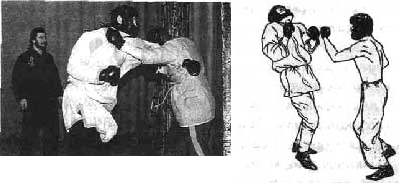 Именно поэтому к штурмовому разделу славяно-горицкой борьбы проявляют такой интерес силовые структуры. Во многих армейских частях специального назначения штурмовой бой занимает прочное место в системе физической подготовки. Не случайно, что ни одно подразделение специального назначения МВД, практикующее славяно-горицкую борьбу, в боевых действиях в Чечне не потеряло ни одного человека. Какая тут связь? Приведу конкретные примеры. Так, скорость и точность реакции у занимающегося штурмовым боем повышается в 3 раза! С учетом того, что на поражение противника "штурмовику" дается одна секунда. За это время боец в состоянии нанести удар ногой, мгновенно перейдя на сокращение дистанции и нанеся при этом еще 2-3 удара руками — атака заканчивается либо динамическим сбиванием, либо силовым броском. Шансы противника уцелеть после такой атаки очень зыбки. Тем более нереально надеяться на поставленный блок или угадать направление удара. Штурмовой бой способен развить практически все необходимые бойцу профессиональные рефлексы — в среднем за 3-4 месяца подготовки. Другое дело — уровень личной психической и физической зрелости. За несколько лет преподавания штурмовой драки у меня сложилось впечатление, что патологической трусостью и малодушием страдает больше половины мужского населения. Из сотен соискателей, прошедших через мои тренировки, было не более трех десятков с хорошими бойцовскими способностями, а реализовать свой потенциал смогли единицы. А что же остальные, спросит читатель. По поводу остальных складывается следующий собирательный образ. Подавляющее большинство приходит под воздействием желания "поправить здоровье", остальные с намерением "изучить пару крутых приемчиков". Были и такие, кто хотел заниматься именно "русским стилем", то есть вдоволь поплясать, попеть частушек и расслабленно постигать премудрости боя. Справедливости ради следует отметить и тех немногих, кто смог проявить себя как мужчина, начиная от активной жизненной позиции и заканчивая умением и желанием драться.