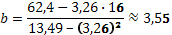 2. Найдем параметры линейного уравнения регрессии по формулам: