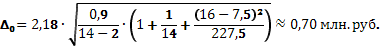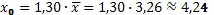 при прогнозном значении x 0, составляющем 130% от среднего уровня x: