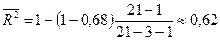 Пример № 3. Для изучения рынка жилья в городе по данным о 21 коттедже было построено уравнение множественной регрессии:
