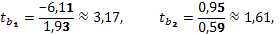 Сравним табличное значение критерия Стьюдента с наблюдаемыми значениями. Делаем вывод о статистической значимости параметров