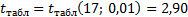 Найдем табличное значение критерия Стьюдента (см. приложение 4):