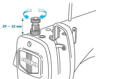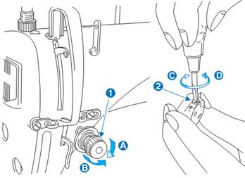 Для того чтобы уменьшить натяжение шпулечной нитки, поверните винт регулировки