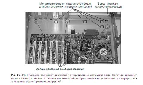 Рис. 22.11. Проверьте, совпадают ли стойки с отверстиями на системной плате. Обратите внимание: на шасси имеется множество монтажных отверстий, которые позволяют устанавливать в корпусе системные платы самых разных конструкций