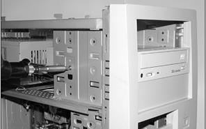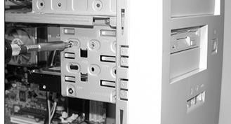 В некоторых типах корпусов описанного съемного отсека нет. В данном случае просто поместите жесткий диск и дисковод в отсек корпуса и закрепите с помощью винтов.