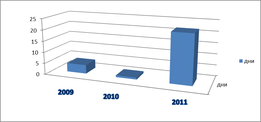 Рисунок 3 — Финансовая устойчивость в днях для ОАО «Брянконфи» за 2009-2011 г.г.
