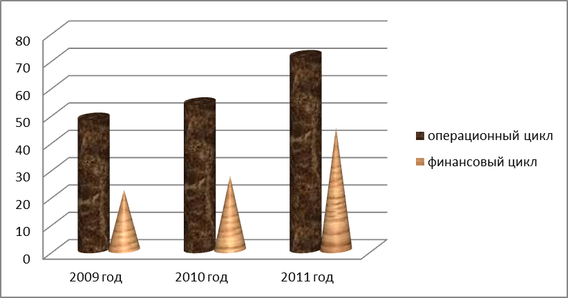 Рисунок 10 – продолжительность финансового и операционного цикла ОАО «Брянконфи» за 2009-2011 г.г. Операционный и финансовый циклы предприятия ОАО «Брянконфи» представлены на рисунках 21-23.