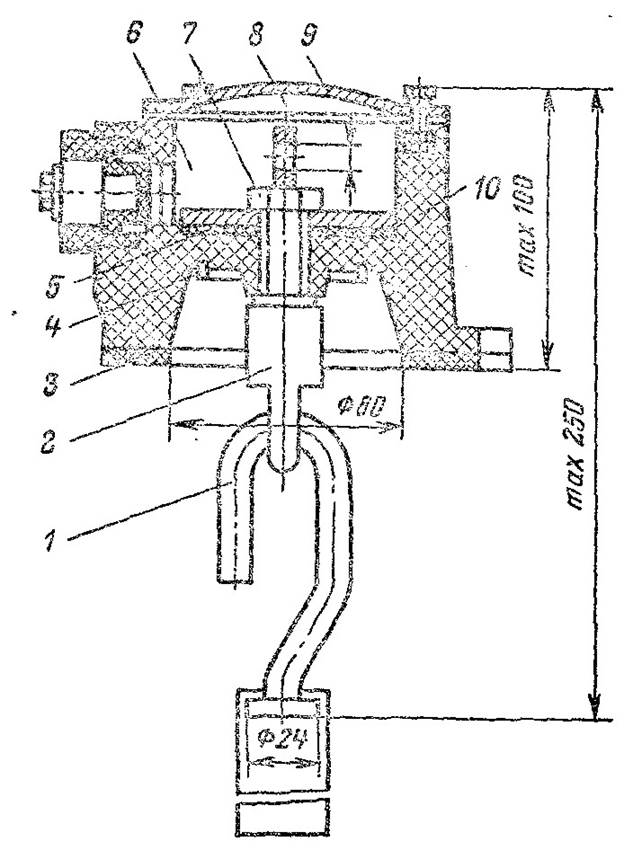 Для защиты от коррозии диск футеруется слоями свинца 8. Датчик с помощью кабеля подвешивают на требуемой высоте, при достижении которой уровнем воды замыкаются цепи управления и сигнализации.