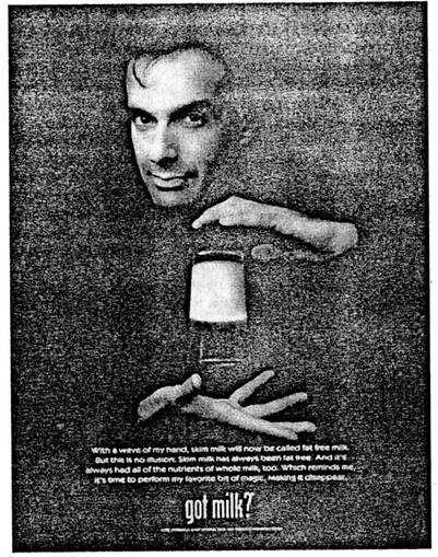 Кампания была призвана противостоять неверным представлениям и пополнить знания потребителей о продукте, предоставив в их распоряжение «крупицы удивительной информации о молоке». В то же время кампания шла гораздо дальше простого описания преимуществ молока, делая основной упор на представление обезоруживающе убедительных образцов стиля жизни, который просто немыслим без молока. Она была разработана рекламным агентством «Bozell Worldwide» и проиллюстрирована замечательными снимками Энни Лейбовиц, блестящего фотографа-портретиста, участвовавшего в проекте «American Express» «Членство имеет свои преимущества». К созданию галереи образов кампа нии были привлечены многие знаменитости, включая супермоделей Наоми Кэмпбелл, Кристи Бринк-ли, Кейт Мосс и Айман, актеров и актрис Мэтта Фокса, Джимми Смитса, Денниса Франца, Джонатана Тейлора Томаса, Настасью Кински, Лорен Бэ-колл, Изабеллу Росселлини, спортменов Кристи Ямагучи, Габриэлу Сабатини, Патрика Эвинга и Пита Сампраса, а также другие известные личности, в том числе Спайка Ли, Пола Шаффера, Дэвида Копперфилда, Ларри Кинга, Марту Стюарт, причем все они позировали с «молочными усиками» над верхней губой. Текстом каждого рекламного плаката искусно проводилась параллель между миром звезды и полезными качествами молока. Вариант с Мартой Стюарт, например, активно цитируется в кулинарных журналах, также рекомендующих отдавать предпочтение в рецептах молоку, а не воде. Новый покоритель девичьих сердец Джонатан Тейлор Томас обращается главным образом к девочкам-тинейджерам, утверждая, что три стакана молока в день существенно укрепят скелет юных дам. Олимпийский чемпион Майкл Джонсон появляется с молочными усиками на обложке бестселлера, посвященного вопросам спортивного питания. Участники кампании вместе представляют широкий социальный срез нашего общества, что делает их мотивационный призыв к действию весьма эффективным по отношению к широкому кругу потребителей. Кампании, похоже, суждена долгая жизнь, поскольку существует возможность постоянного обновления галереи ее персонажей самыми крутыми новыми звездами из всех сфер публичной деятельности. Посвященный молоку сайт в Интернете перекликается с печатными материалами своей страничкой «Известные лица», своего рода справочником «Кто есть кто» в мире обладателей молочных усиков, дающим сведения о том, почему они считают, что пить молоко - это здорово.