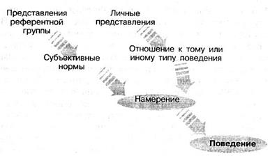 Помимо физических переживаний существуют переживания, связанные со взаимодействием с другими людьми. Взаимодействие не возникает в социальном вакууме. Поведение людей зависит не только от собственных исходных представлений, отношений или намерений, но и от представлений, присущих членам референтных групп, и от действующих социальных норм (см. схему). Все это мы еще обсудим более подробно в главе, посвященной маркетингу соотнесения.