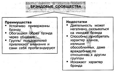 Брэндовые сообщества достаточно широко распространены. Обнаружить их можно среди пользователей компьютеров «Macintosh», поклонников мотоциклов «Harley-Davison», посетителей сайтов «Teenage idol» в Интернете, владельцев автомобилей марки «Saturn».