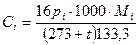 для составляющих газовой смеси, мг/м3 (кг/м3):