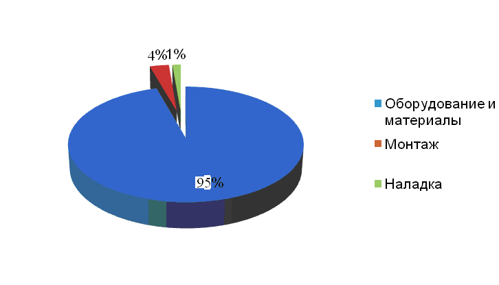 Из структуры затрат на внедрение проекта видно, что основные затраты приходятся на стоимость оборудования и материалов.