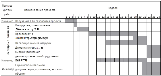 Строится линейный график проведения работ, отображенный в таблице 4.3.