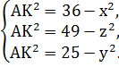 Введем обозначения: АВ = х, AC = z, AD = y.