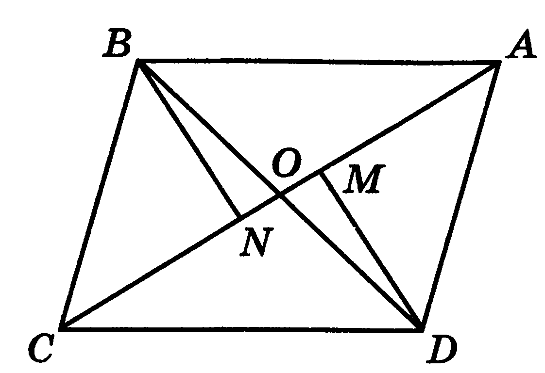 DM, откуда следует, что BN = DM. ∠MOD = ∠NOB как вертикальные, следовательно, прямоугольные треугольники BON и MOD равны по катету и острому углу, откуда имеем
