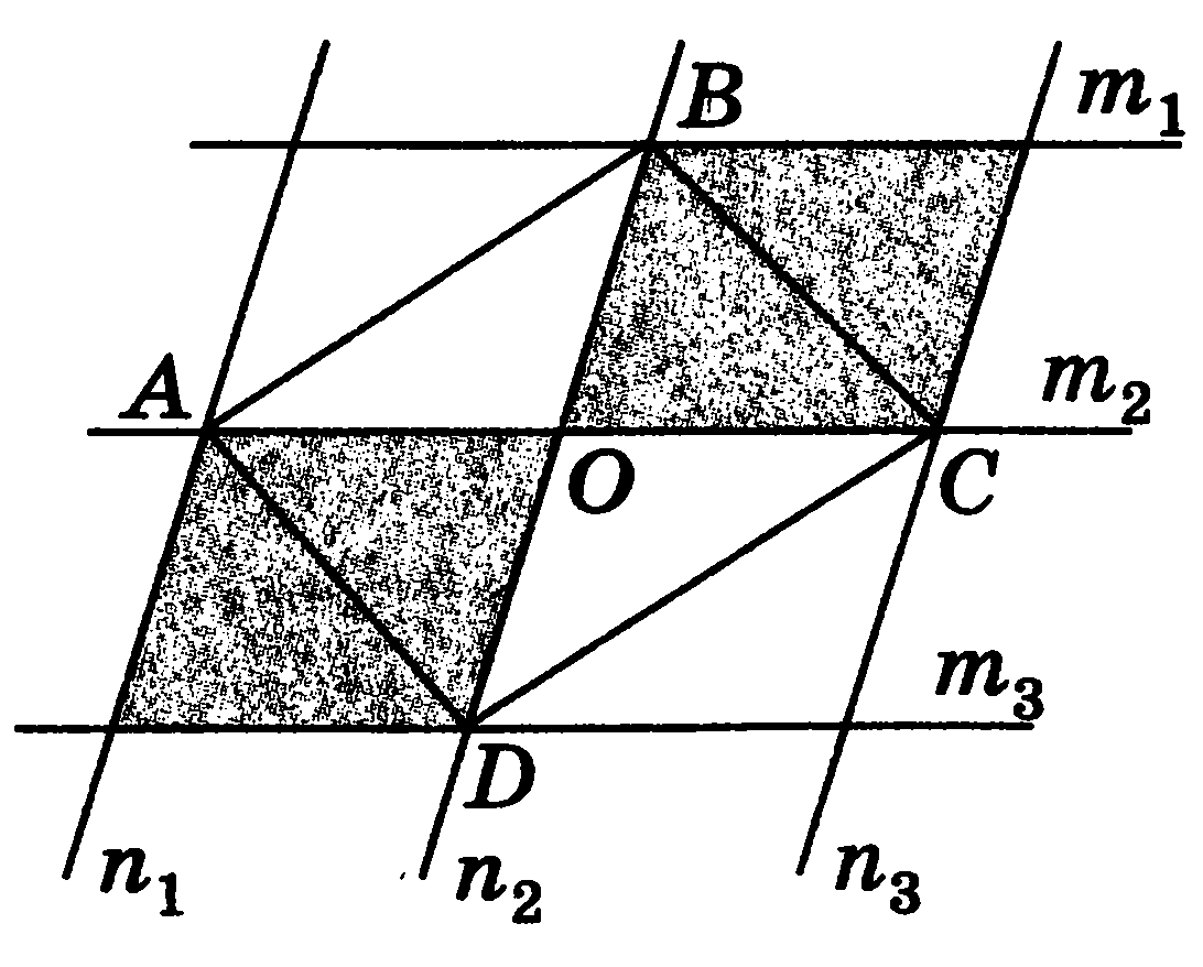 . И так как площади треугольников BCD и ACD равны и основанием у них является один и тот же отрезок CD, то и высоты этих треугольников будут равными. То есть мы доказали, что все точки отрезка АВ отстоят на одинаковом расстоянии от отрезка CD, а значит, АВ ∥ CD. Аналогично доказывается параллельность отрезков AD и ВС. Из того что в четырехугольнике противоположные стороны оказались попарно параллельны, мы заключаем, что он является параллелограммом.