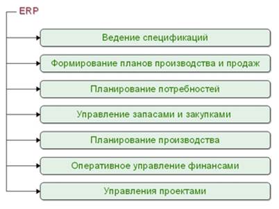 Поскольку основой ERP системы является находящаяся внутри неё MRP II система, то, естественно, что функции и одной и другой во многом схожи.