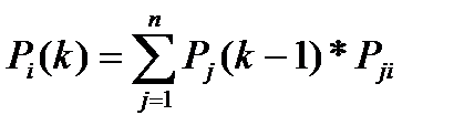 Если для однородной марковской цепи задано начальное распределение вероятностей и матрица переходных вероятностей известна, то вероятности состояний системы Pi (k) в момент времени k определяются по формуле: