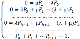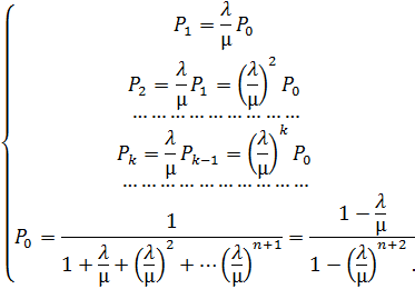 вероятность отказа Pотк = Рn+1 = (λ/µ)n+1P0;