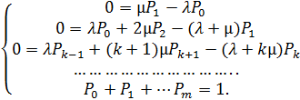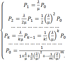 вероятность отказа Pотк = Рm = 1/m! (λ/µ)mP0;