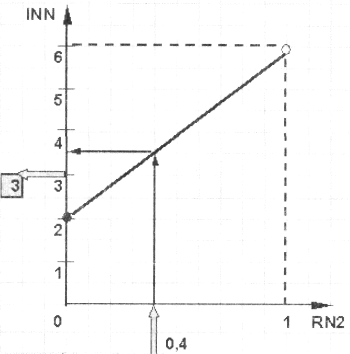 Так как максимальное значение, которое может выдать генератор случайных чисел, равно 0,999, то если в качестве второй точки укажем (1,5), значение 5 никогда не будет достигнуто. Поэтому необходимо указать пару (1,6). Если генератор выдаст число 0,999, то функция, которая показана на рисунке, примет значение 5,996, целая часть которого равна 5 (это и будет значением GPSS-функции INN). В случае, если генератор случайных чисел RN2 выдаст значение 0,4, GPSS-функция INN примет значение 3,6. Если необходимы целочисленные значения, то можно воспользоваться встроенной функцией INT – взятия целой части:
