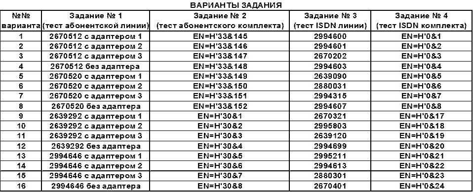 Задание 4. Тест цифрового абонентского комплекта EN=H’711&211.